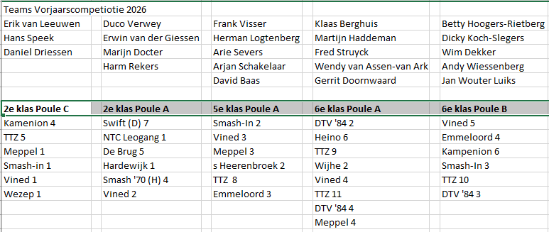 De senioren spelen thuis op de donderdagavond, aanvang 19.45 uur.